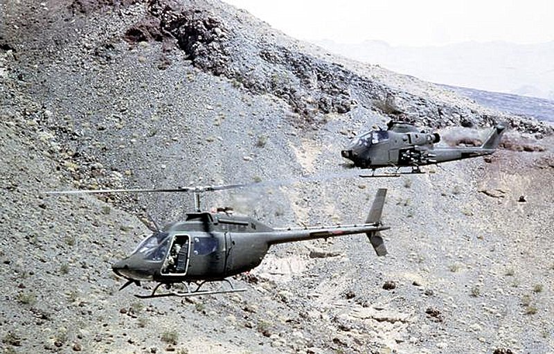 An OH-58 Kiowa Observation Helicoptor & AH-1 Cobra Gunship